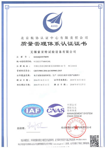 質(zhì)量管理體系認證證書(GB/T19001-2008)