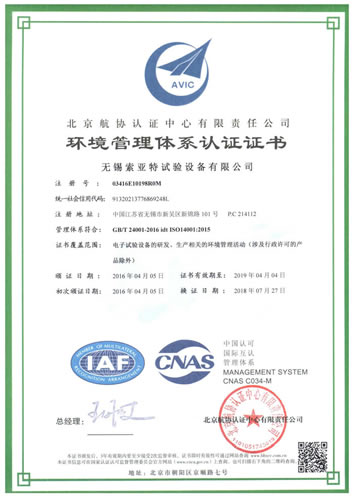 質(zhì)量管理體系認證證書(GB/T24001-2004)